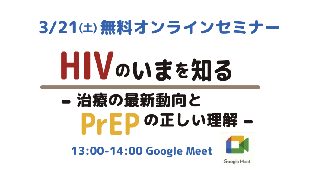 テーマ:「HIVのいまを知る―治療の最新動向とPrEPの正しい理解―」 日時:3月21日(土) 13:00〜14:00講師:医療法人財団 荻窪病院 血液凝固科 臨床心理士 小島賢一 先生視...